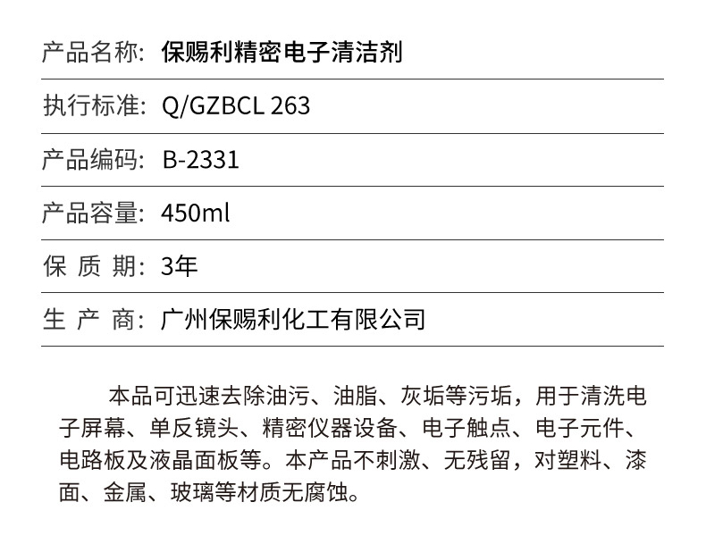 保赐利洗板水 精密电子清洁剂 电脑电路板带电清洗剂 450ML
