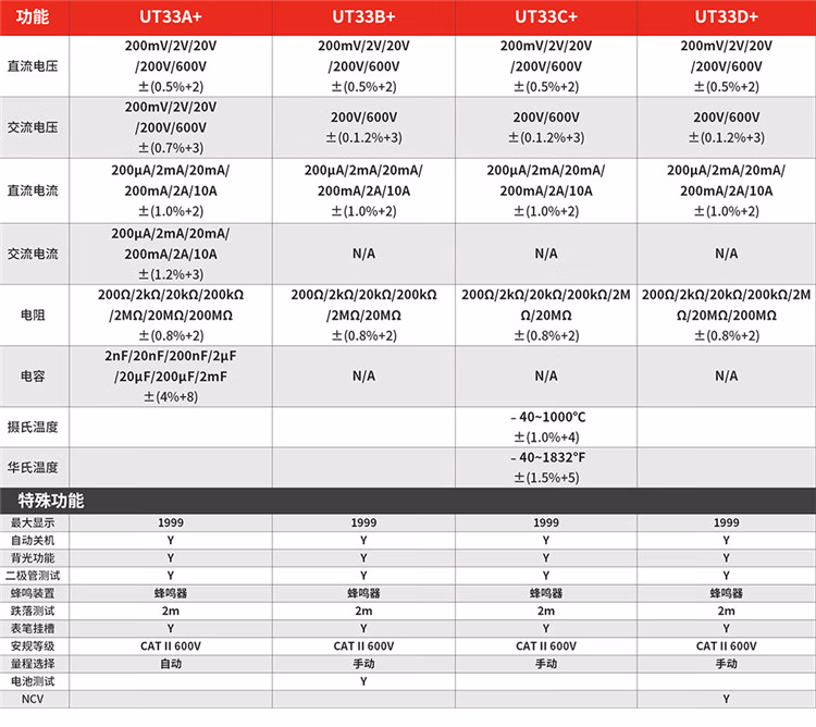 优利德(UNI-T)数字万用表高精度多功能智能防烧万能表电工专用小型家用电压电流 UT39C+(温度+频率+NCV) https://item.jd.com/72369051179.html