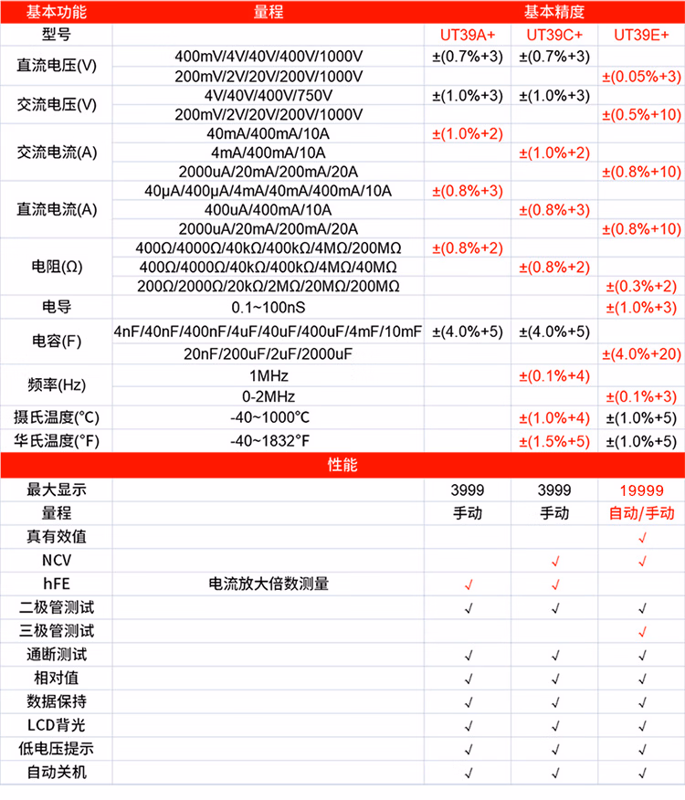 优利德(UNI-T)数字万用表 UT39C+(温度+频率+NCV)