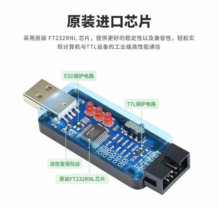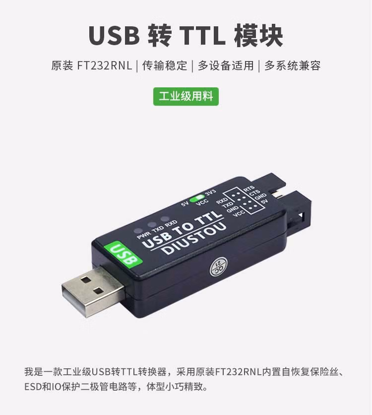 丢石头 FT232 USB转TTL usb转uart串口模块 工业级刷机板 单片机烧录【USB Type A接口(工业级)】