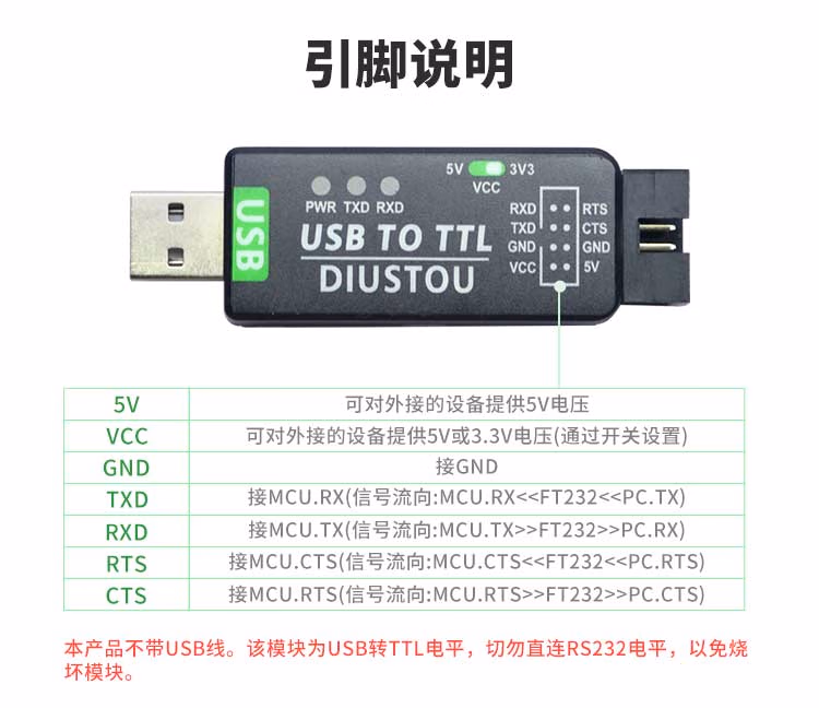 丢石头 FT232 USB转TTL usb转uart串口模块 工业级刷机板 单片机烧录